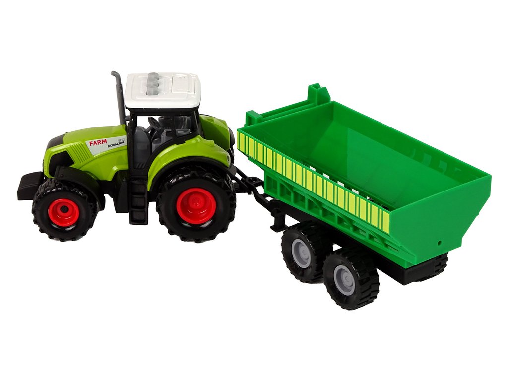 - Sada obsahuje traktor s přívěsem a zemědělským strojem, které společně tvoří funkční mini farmu