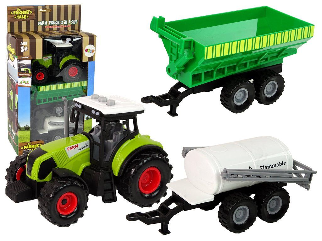 - SADA TRAKTOR S PŘÍVĚSEM A CISTERNOU S LED SVĚTLY Sada zemědělských strojů s traktorem a dvěma stroji je ideální volbou pro děti, které se zajímají o vozidla a práci na farmě