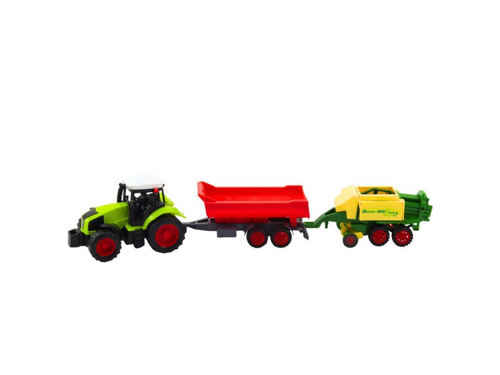 - Zemědělský traktor s lisem a přívěsem je vynikající volbou pro děti, které milují hru na farmáře a fascinuje je technika používaná na statku