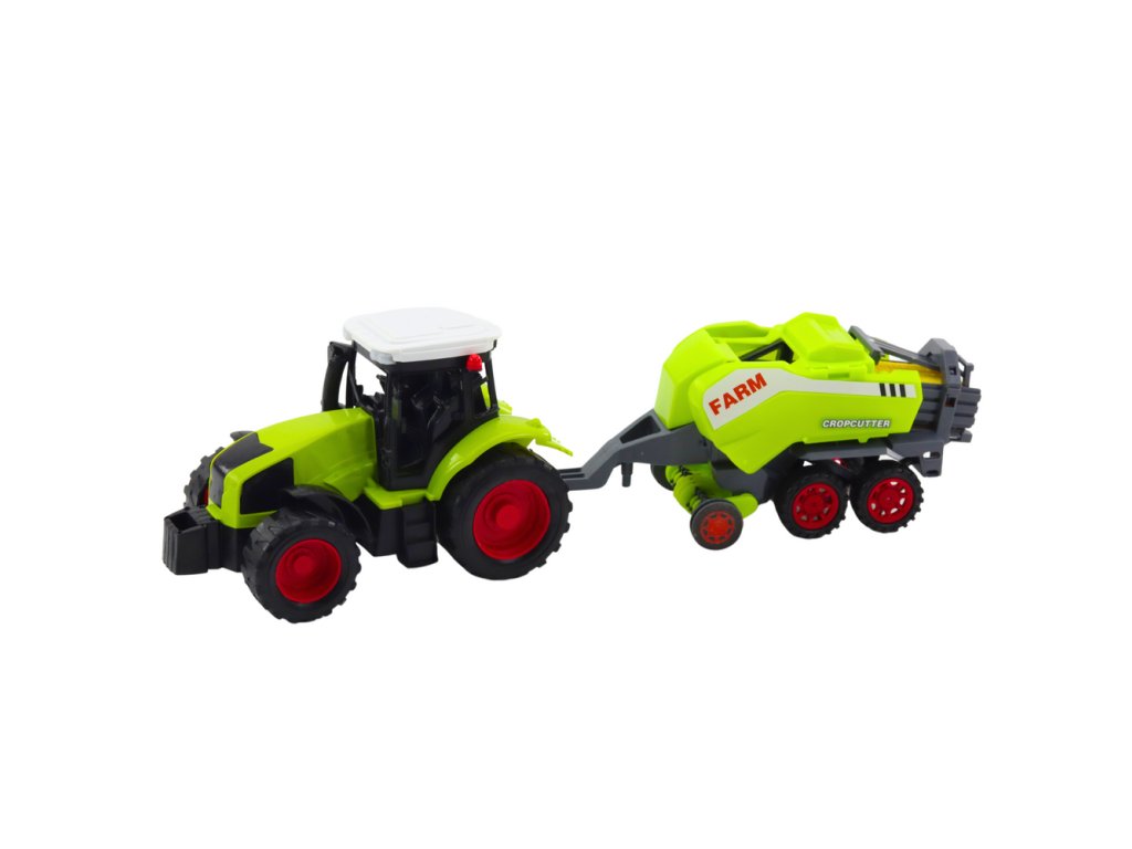 - Zemědělský traktor s lisem na balíky sena v zelené barvě je výbornou volbou pro děti, které se zajímají o zemědělství a rády napodobují skutečné zemědělské stroje