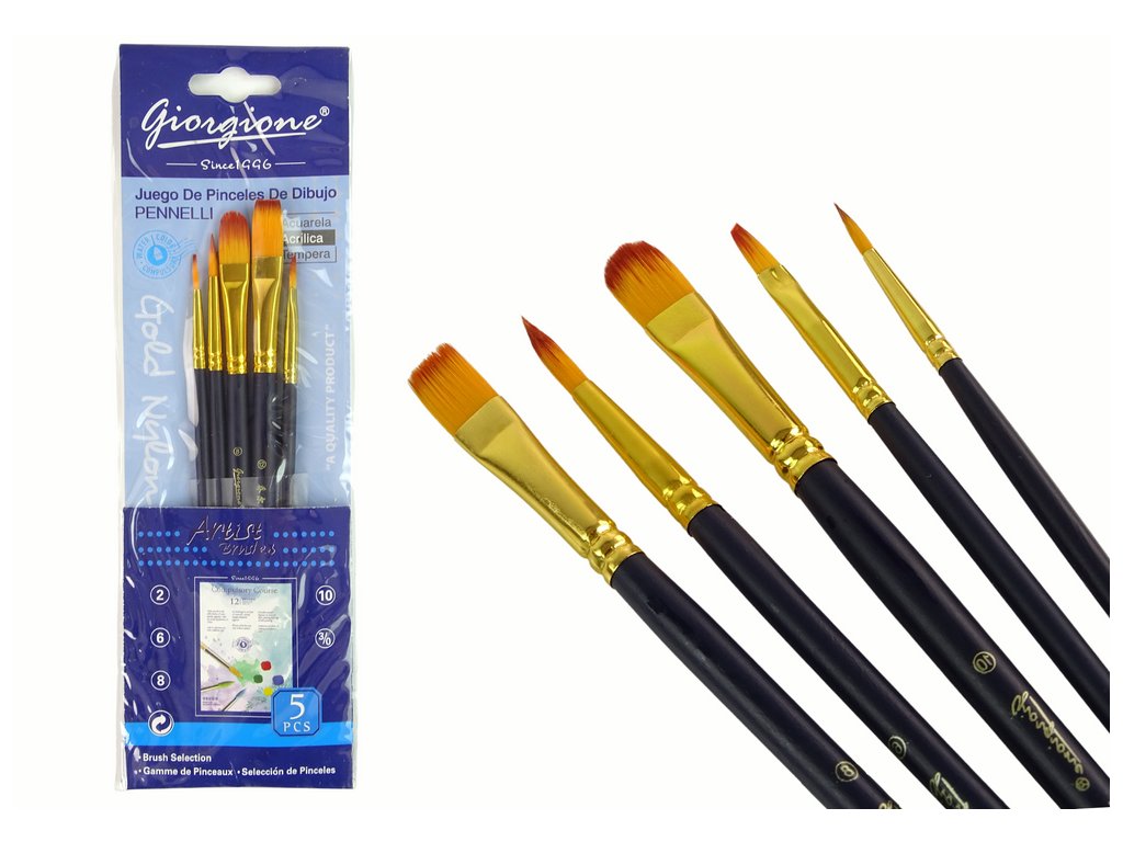 - Různé délky a tvary štětin pro širokou škálu výtvarných technik Každý štětec ve setu se pěti tvary byl navržen s důrazem na detail a kvalitu