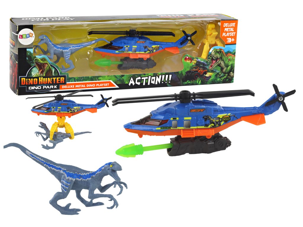 Vrtulník Helikoptéra Park Dinozaurů Sada Modrý Dino Park Vrtulník s dinosaurem je fascinující a kreativní hračka, ideální pro malé objevitele, kteří milují kombinaci leteckých dobrodružství s fascinujícím světem dinosaurů.