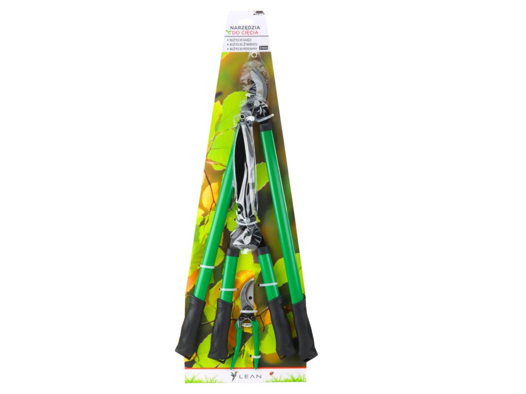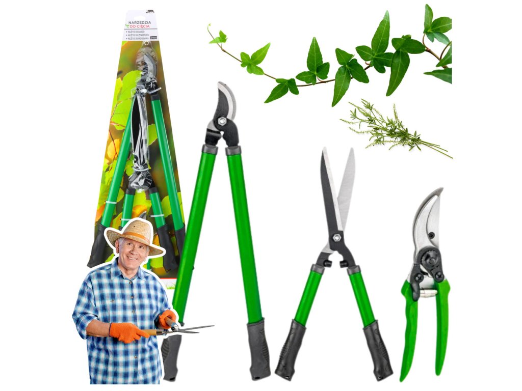 Sada obsahuje tři různé modely dlouhý zahradnický nůž na silnější větve, nůžky na živý plot a praktické ruční zahradnické nůžky na jemnější práci