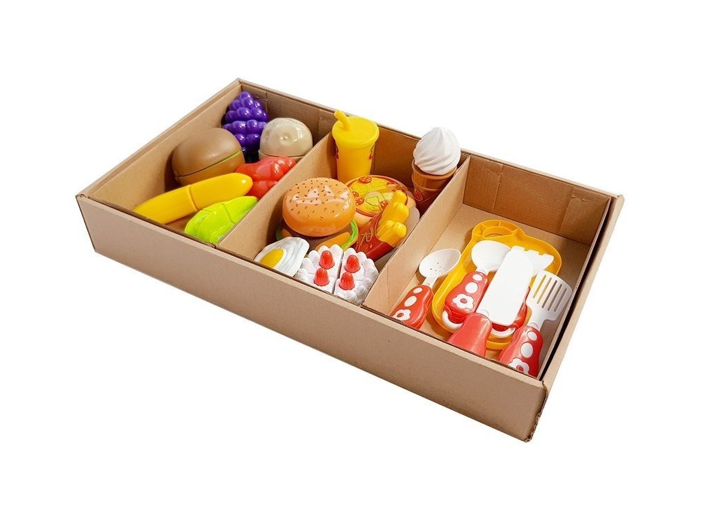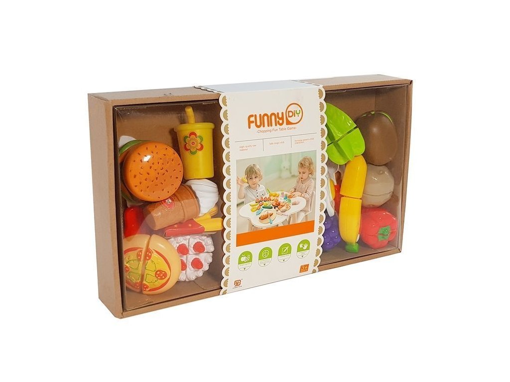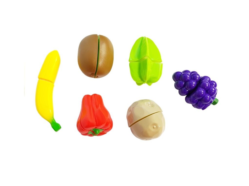 Sada ovoce a zelenina na krájení Naše sada je další atrakcí při hraní na obchod nebo restauraci pro vaše dítě Každý z produktů je dokonalou kopií skutečných potravin, díky čemuž se malý kuchař naučí jejich názvy a vzhled