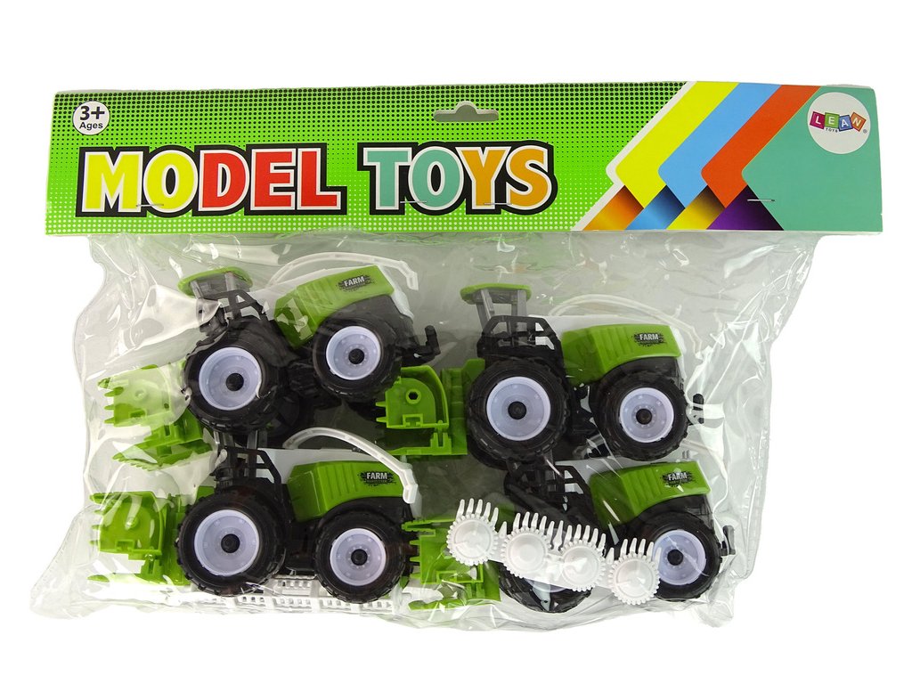 - Sada se skládá ze čtyř traktorů, které mají napodobeniny zemědělských zařízení