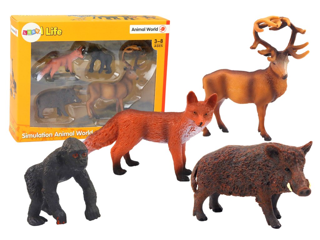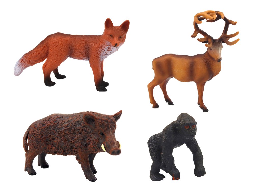 SADA FIGUREK LESNÍCH ZVÍŘAT 4 KS Sada figurek lesních zvířat je skvělá volba pro děti, které rády objevují svět přírody a zvířat Sada obsahuje čtyři realisticky zpracované figurky: jelena, divočáka, lišku a gorilu, které díky důrazu na detail věrně kopírují vzhled skutečných zvířat