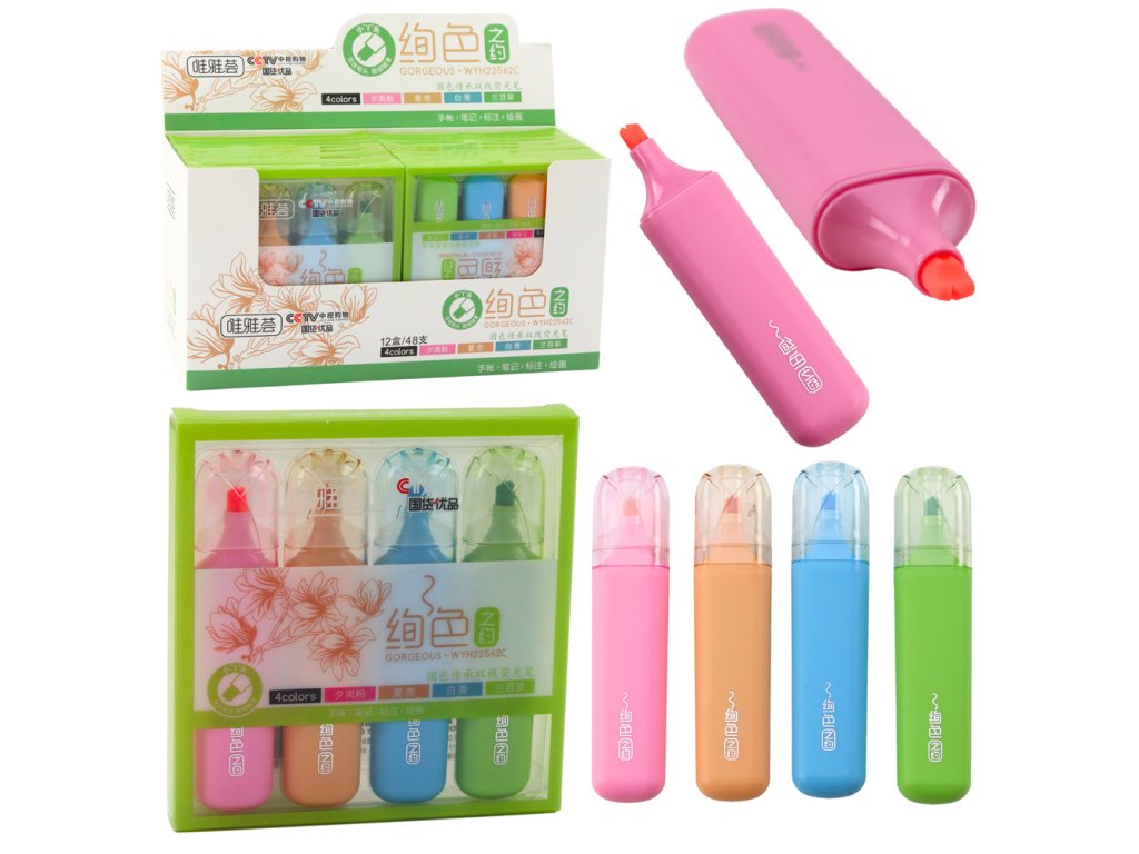 - 4 ks Sada čtyř zvýrazňovačů vybavených inovativním dvojitým hrotem, který umožňuje zvýrazňovatjak tenkou, tak silnou linkou
