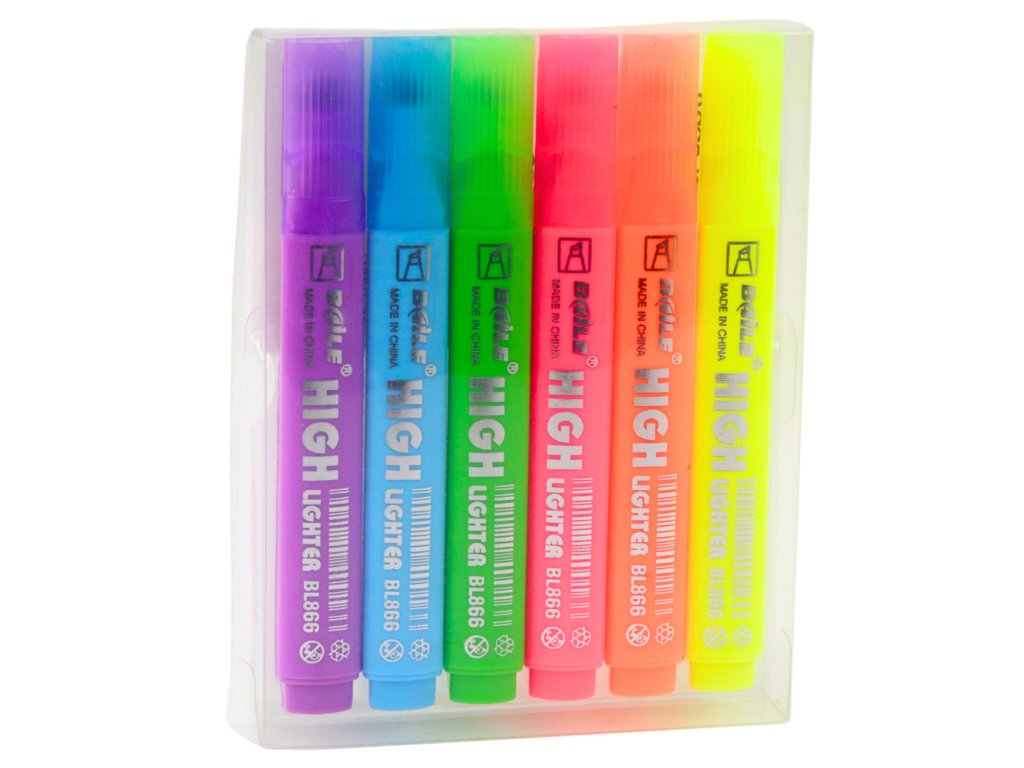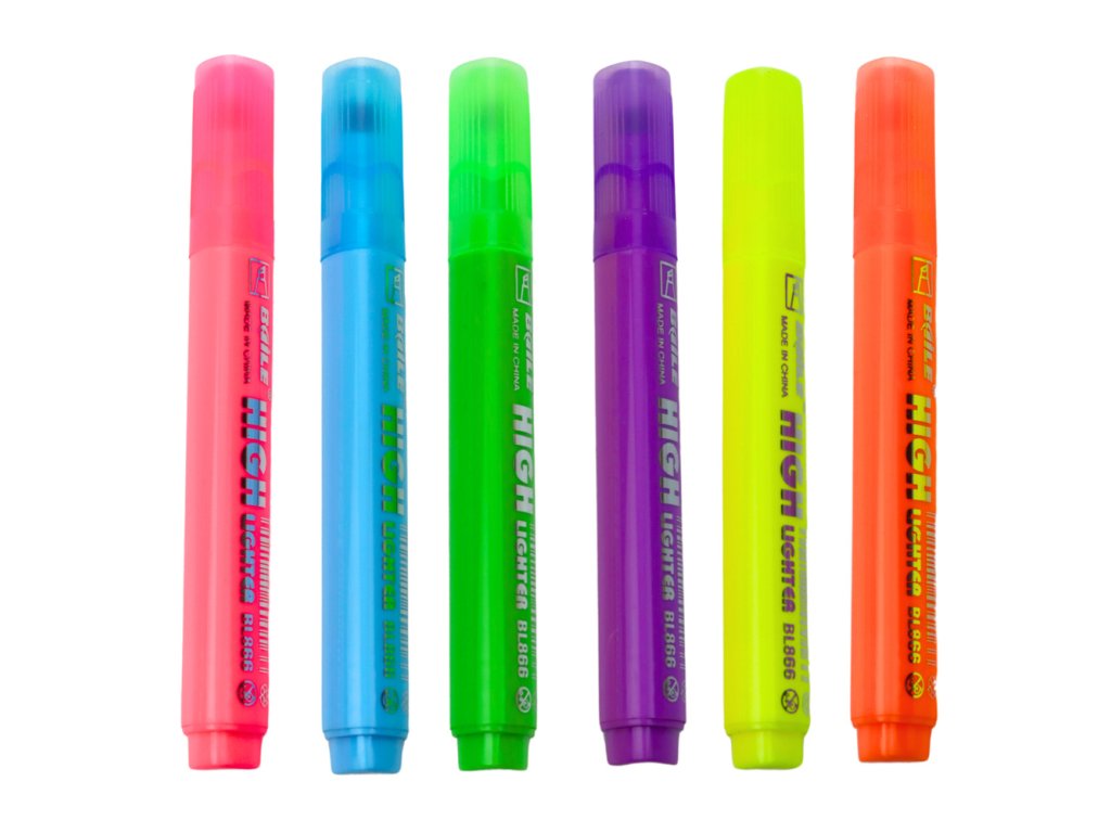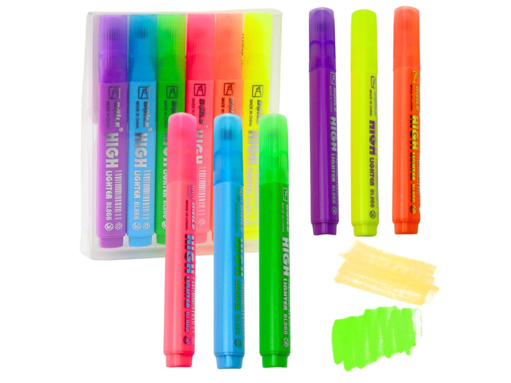 Zvýrazňovače se vyznačují intenzivními neonovými barvami, které dodávají textu jedinečný charakter Díky střední, šikmé špičce umožňují tvorbu jak tenkých, tak širokých čar, což je činí vhodnými pro různorodé použití