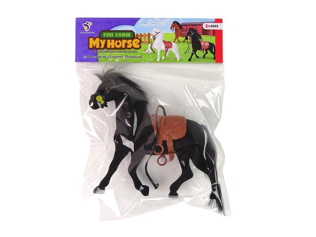 Sada obsahuje figurku černého koně s hnědým sedlem, který je na dotek sametový, díky čemuž se skvěle hodí jako doplněk sbírky zvířátek malých sběratelů Figurka umožní dětem vytvořit si ve svém pokoji vlastní farmu