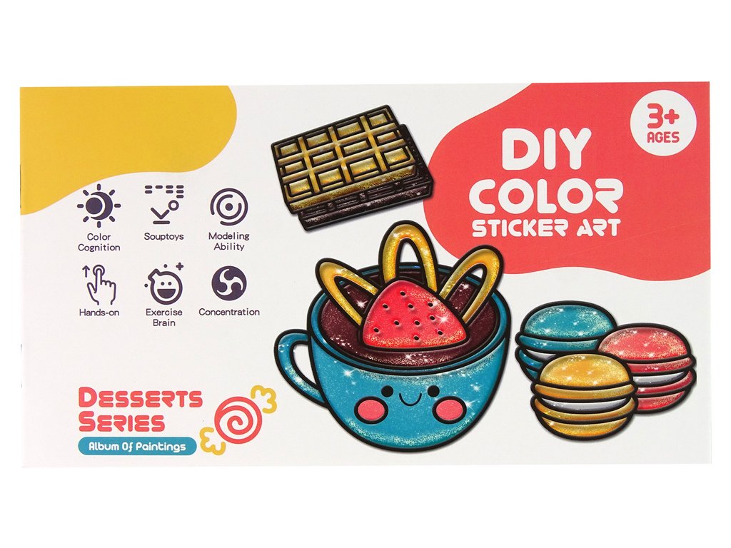 - Sada obsahuje různé samolepky, které připomínají lahodné dorty, makronky a čokolády