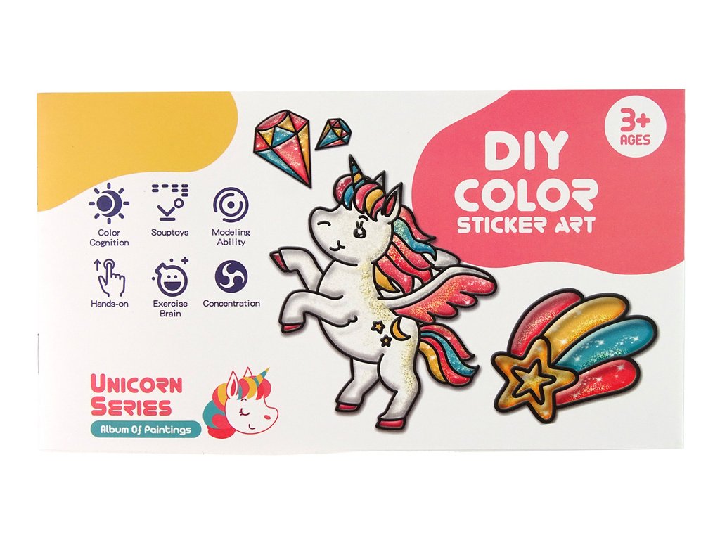 - Sada obsahuje různé samolepky, které připomínají kouzelné jednorožce, barevné duhy a třpytivé hvězdičky