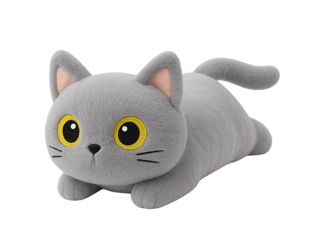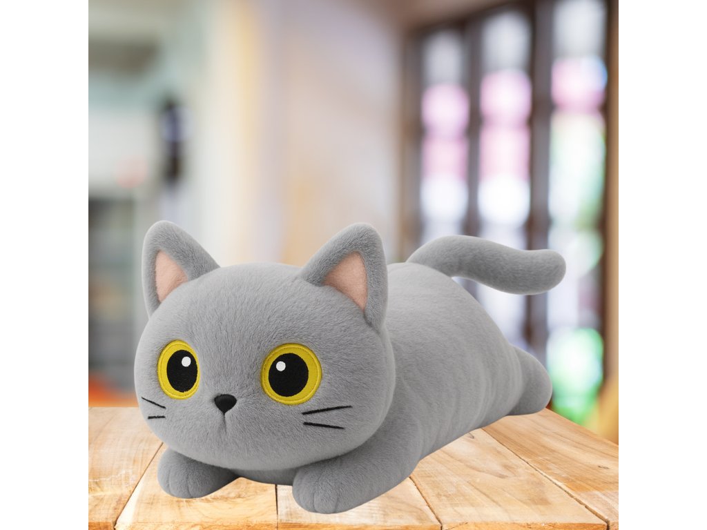 Plyšový polštářek Mazlíček Kočka Šedá – 45 cm je rozkošný, pečlivě zpracovaný a funkční doplněk, který zaujme jak děti, tak dospělé.