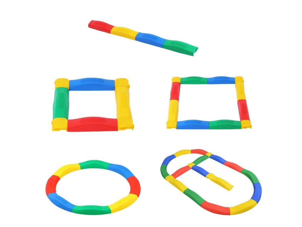 - 16 dílů + 4 spojky s protiskluzovými podložkami je inovační sada, která podporuje rozvoj hrubé motoriky, koordinace pohybů, rovnováhy a smyslové integrace u dětí