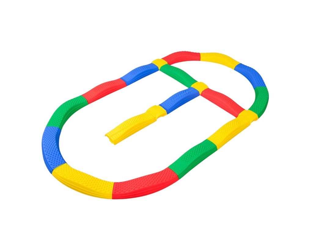 Sensorická rovnovážná dráha – 16 dílů + 4 spojky s protiskluzovými podložkami je inovační sada, která podporuje rozvoj hrubé motoriky, koordinace pohybů, rovnováhy a smyslové integrace u dětí.