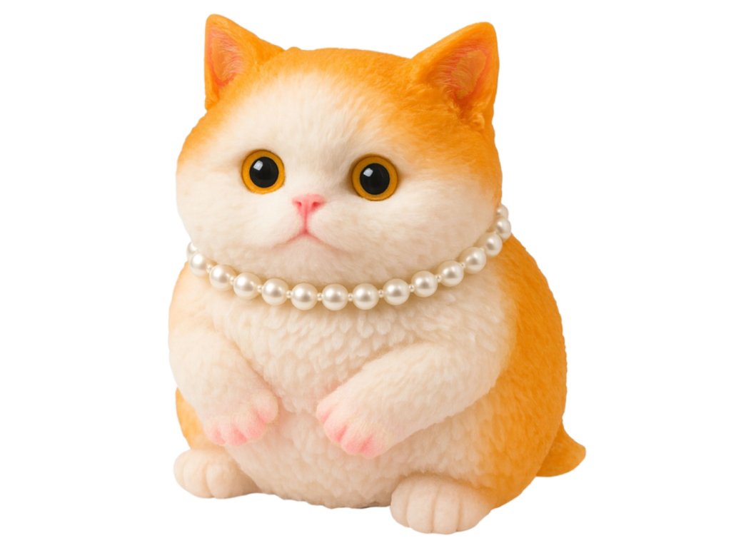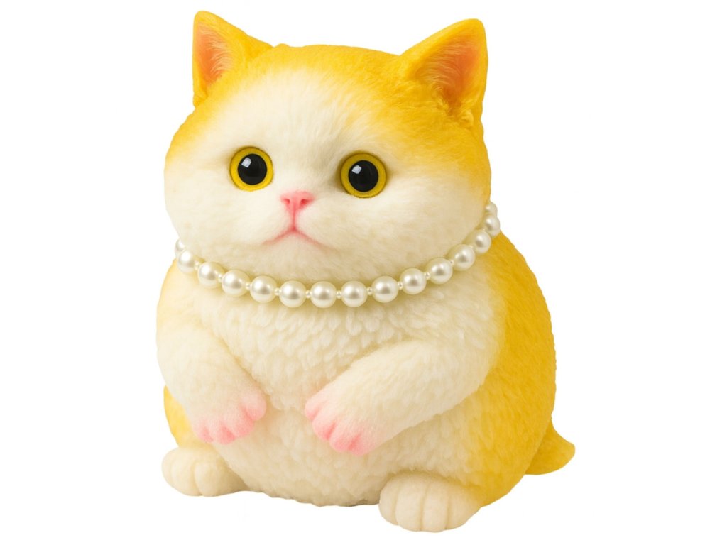 Vyrobeno z vysoce kvalitního elastického silikonového materiálu, tento kotek je nejen měkký a pružný, ale především ideální pro mačkání. Povrch napodobuje srsť skutečné kočky, což přináší autentický dotykový zážitek. Díky elegantnímu perlovému náhrdelníku je tento kotek nádhernou a funkční ozdobou na každém stole nebo polici.