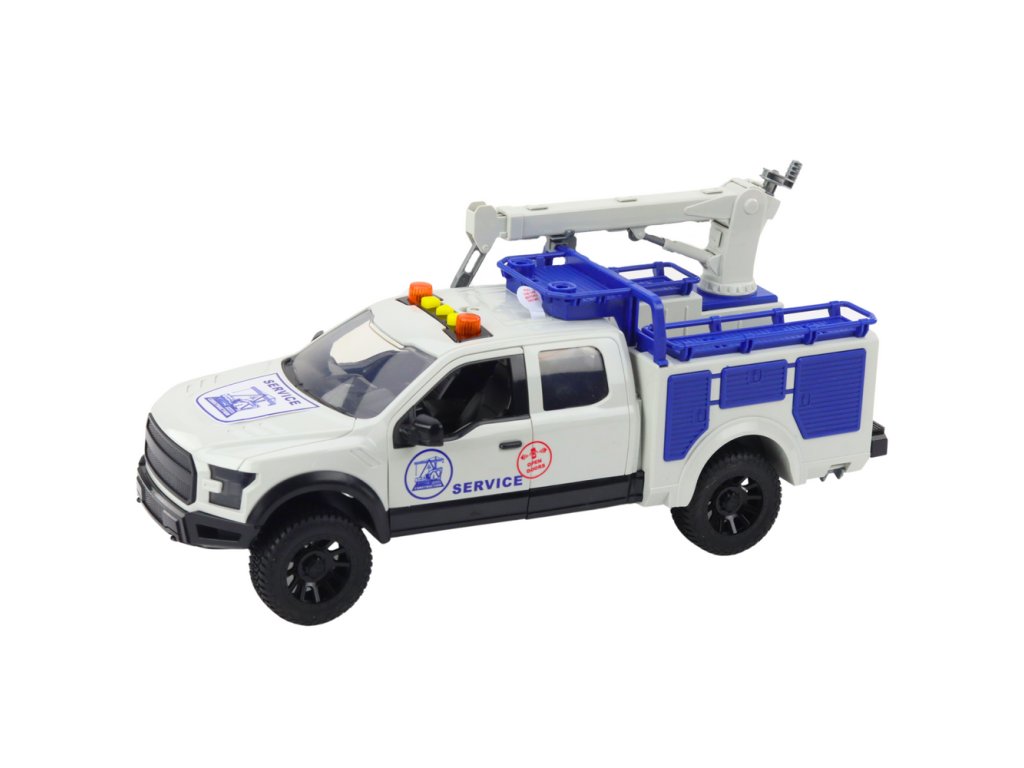 - Servisní vozidlo s jeřábem bílý je realistická hračka pro děti, které fascinují specializovaná vozidla
