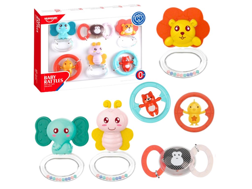 Set Gryzaků Chrastítek pro Kojence Zvířátka 6 ks