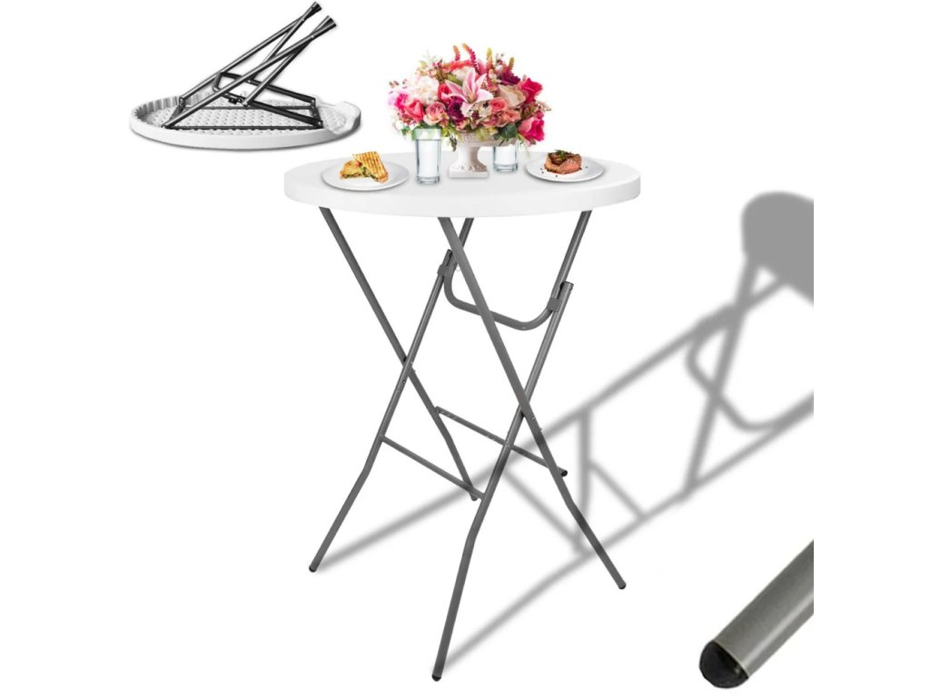 Kulatý skládací cateringový stůl 80 cm je praktickým a elegantním řešením pro různé příležitosti, jako jsou večírky, bankety, akce, veletrhy, či pro domácí a zahradní využití.