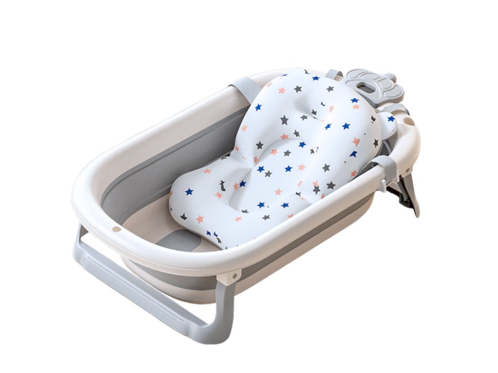 - Skládací dětská vanička s teploměrem a hvězdicovou podložkou v šedé barvě je navržena s důrazem na funkčnost, bezpečnost a komfort