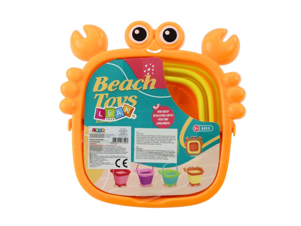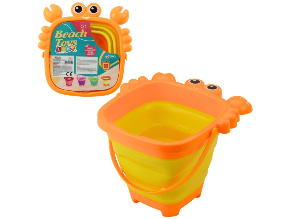 Skládací Dětský Silikonový Kbelík Krab na Pláž Oranžový