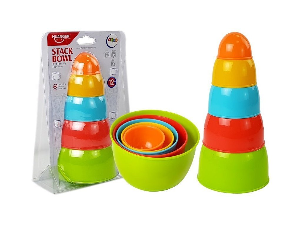 - Pyramidka Miska pro kojence 5 ks Při hraní si vaše dítě procvičuje kreativitu a logické myšlení, pouze jeho fantazie mu napoví, jak je může použít