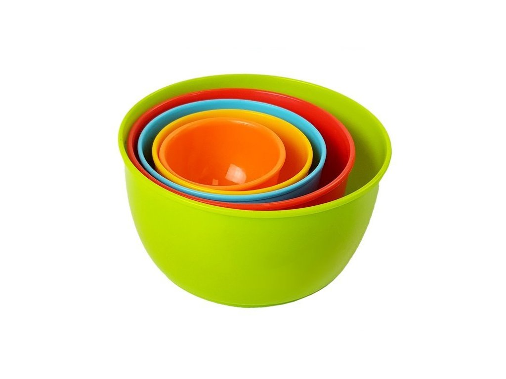 - Každá miska má jinou barvu a velikost, zaoblený tvar, což zvyšuje bezpečnost při používání