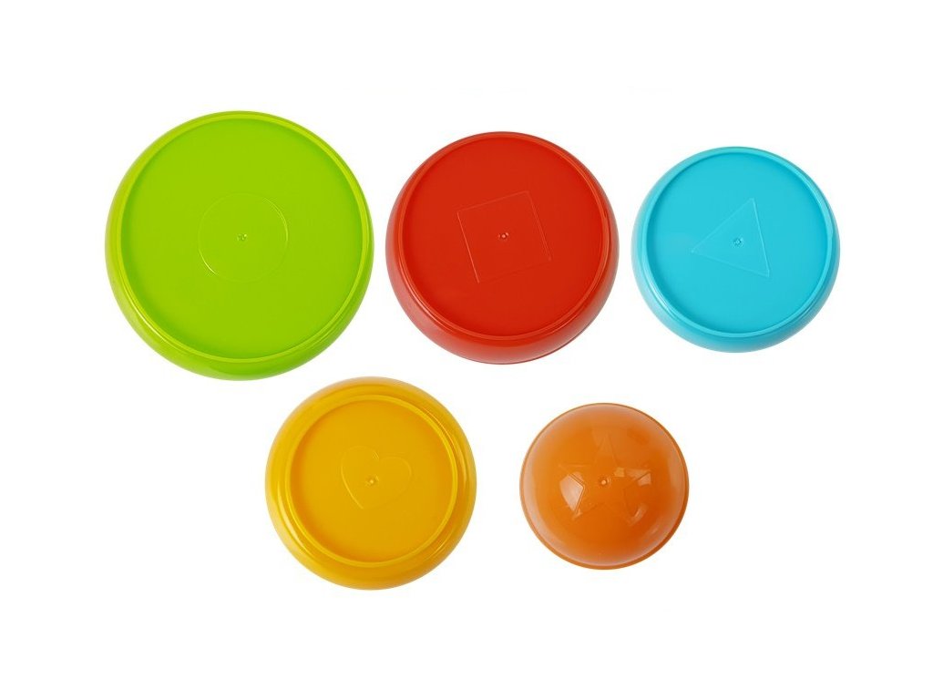 Pyramidka Miska pro kojence 5 ks Při hraní si vaše dítě procvičuje kreativitu a logické myšlení, pouze jeho fantazie mu napoví, jak je může použít.
