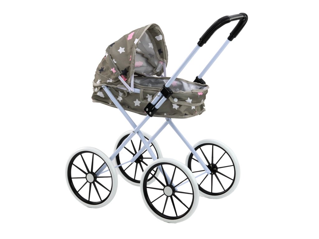 - Vozík pro panenky, velká kola, skládací, hvězdy, šedý Kočárek pro panenky je nepostradatelnou hračkou pro každou milovnici panenek