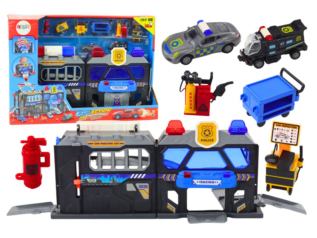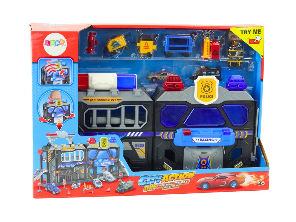Skládací Policie Garaž v Kufru s Světly a Zvuky