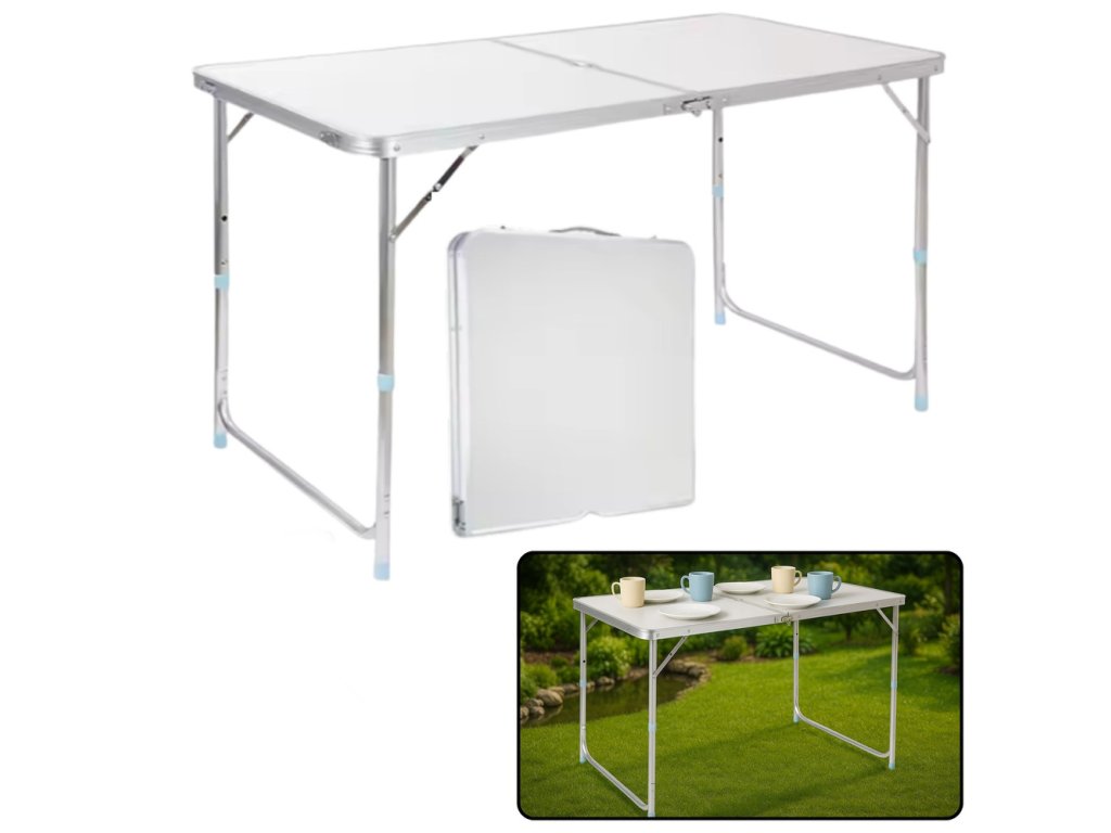 - Rychlé rozložení během několika sekund vám umožní využít jeho širokou desku o rozměrech 120 x 60 cm pro jakoukoli příležitost