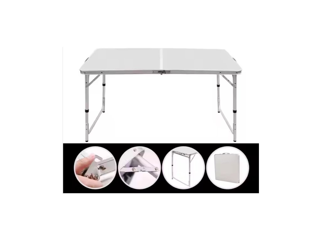 Skládací Turistický Kempingový Stůl Nastavitelný Hliníkový Bílý 120x60cm