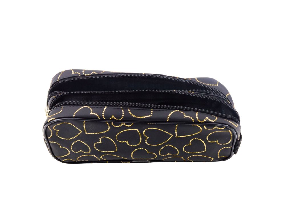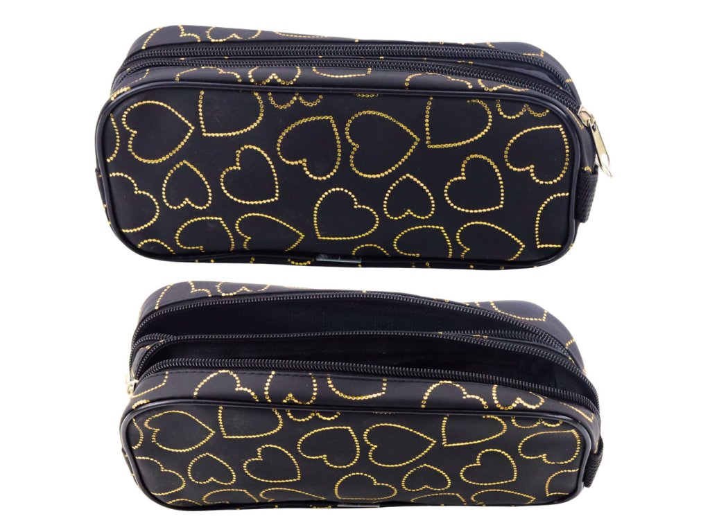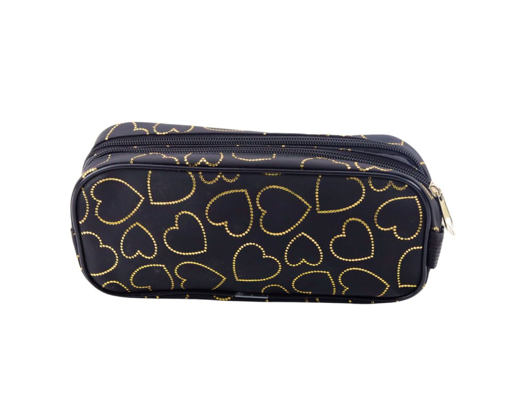 - Tento dvoukapsový penál v elegantní černé barvě se zlatými srdíčky se stane nepostradatelným společníkem každého studenta