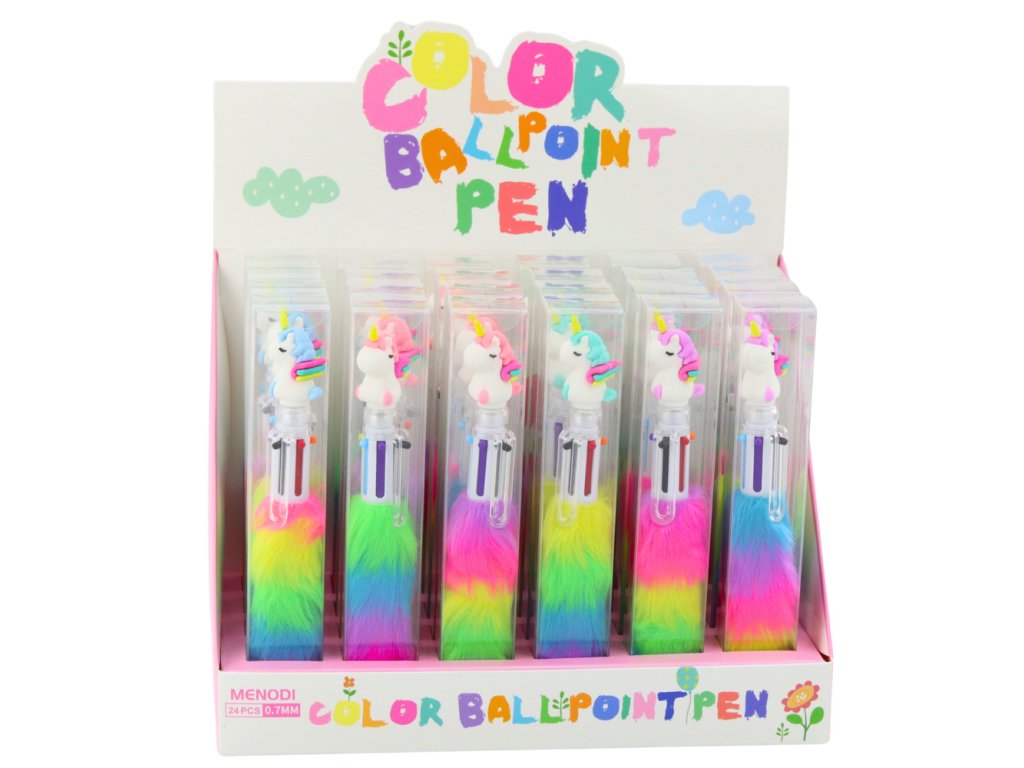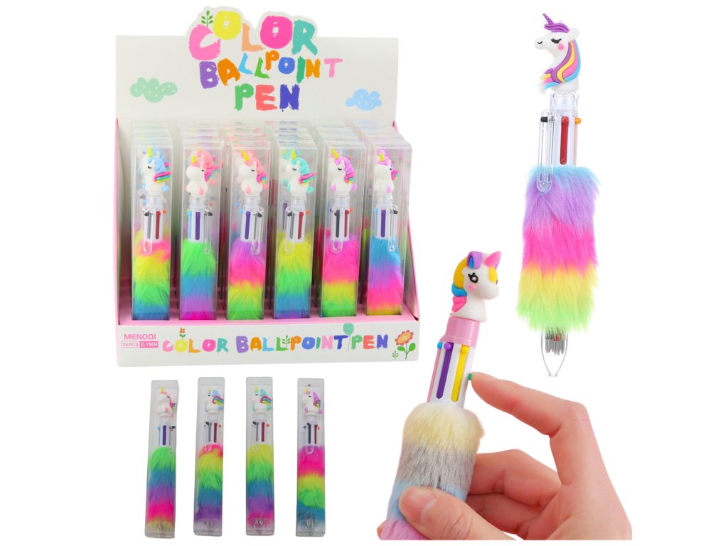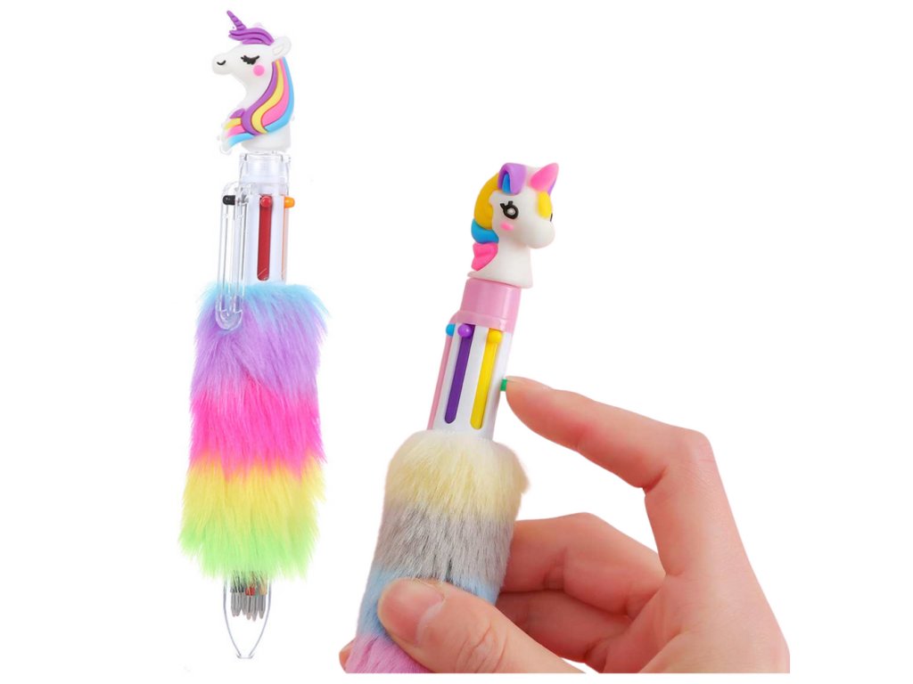 Díky tomu lze jedním perem vytvářet barevné poznámky, kresby nebo ozdobné nápisy bez nutnosti sahat po jiných perech nebo fixech Pero se vyznačuje efektní hlavicí ve tvaru jednorožce, která mu dodává pohádkový charakter, a barevným měkkým chlupem, který mu přidává mimořádný půvab a přitahuje pozornost na první pohled