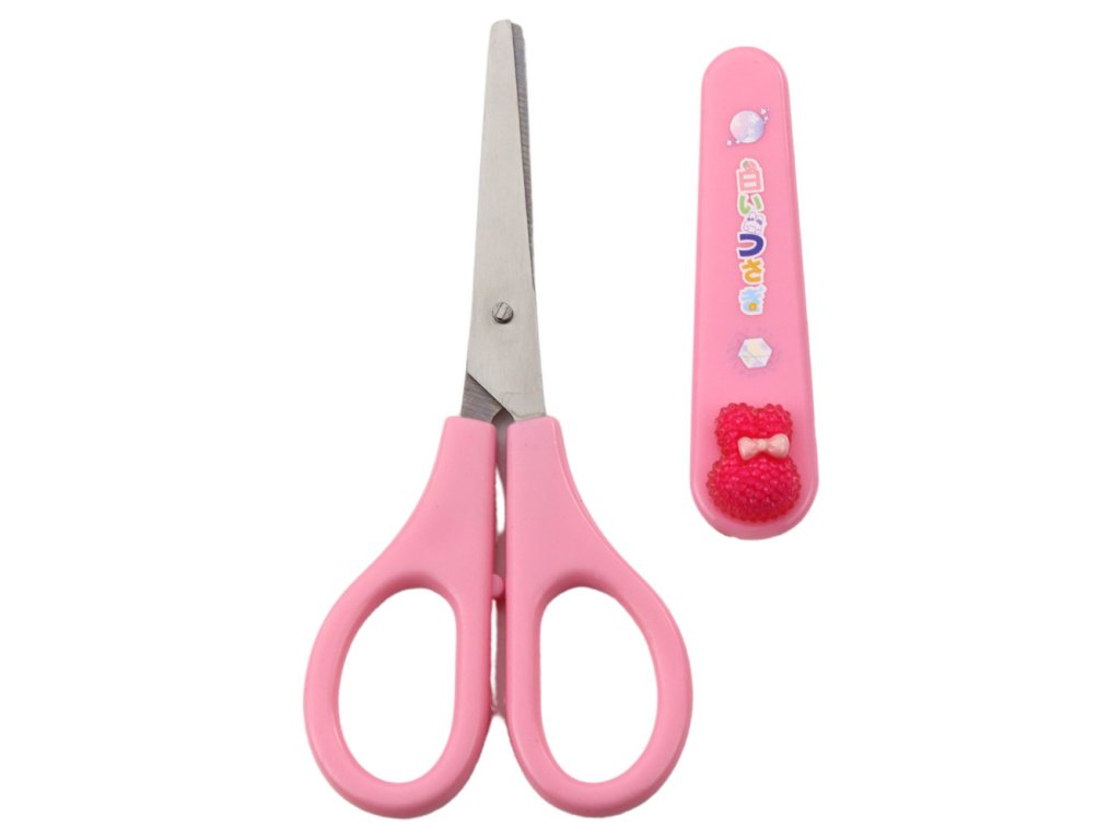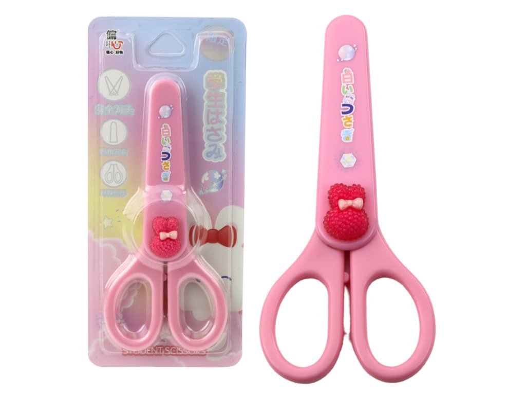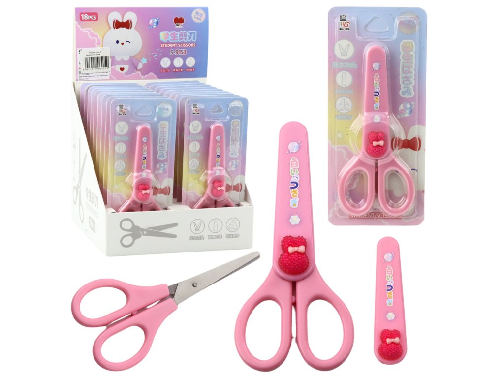 Školní nůžky s ozdobným krytem – Růžový zajíček, 14 cm jsou bezpečnou a půvabnou volbou pro děti, které začínají objevovat svět výtvarných prací.
