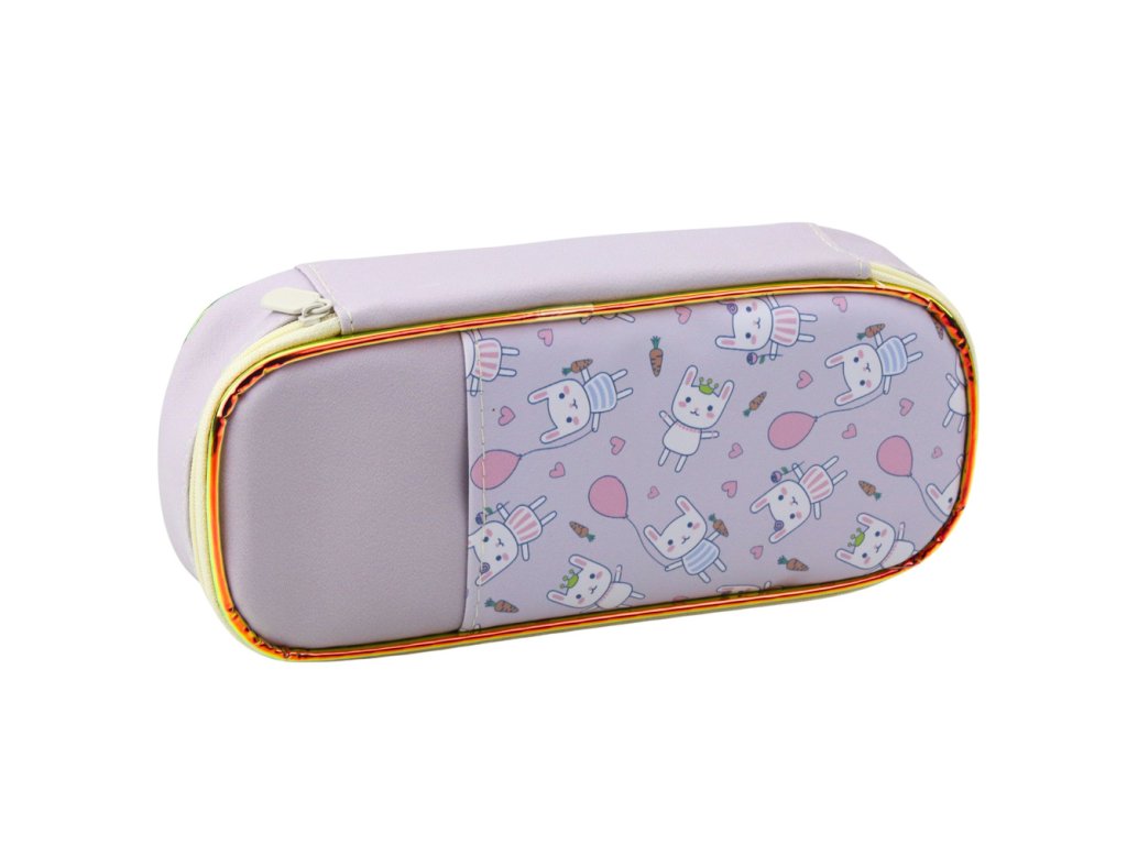 Školní penál s motivem zajíčků s přední kapsou Funkční a estetický penál s motivem roztomilých zajíčků je skvělou volbou pro každého žáka.