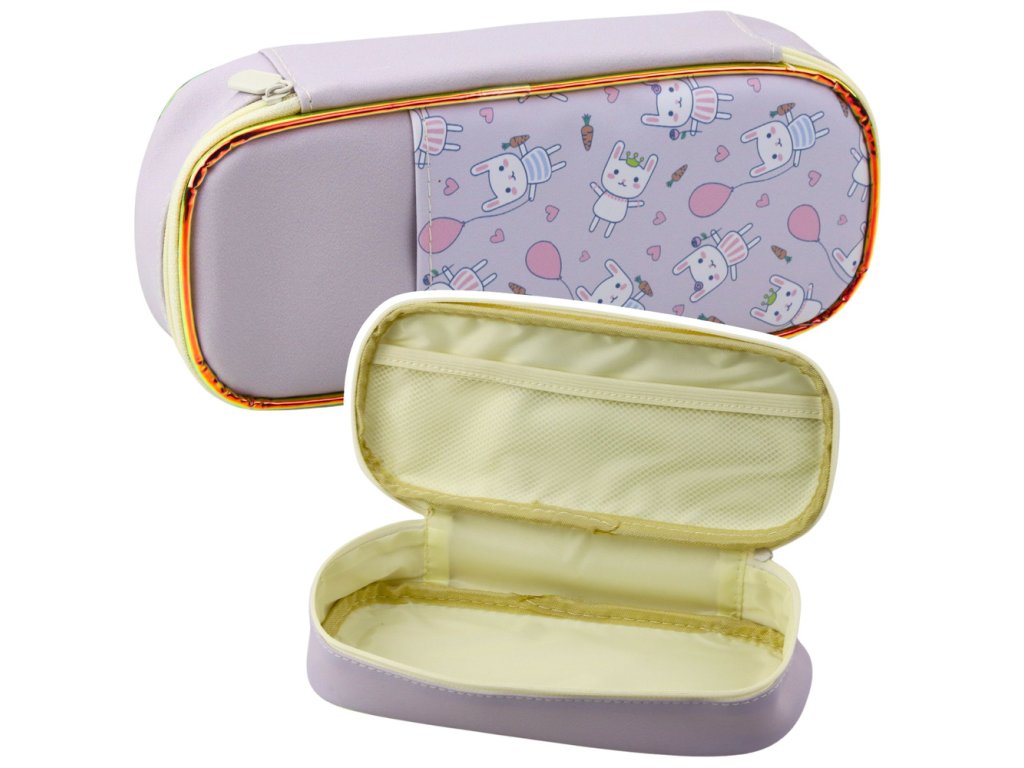 Školní penál s motivem zajíčků s přední kapsou Funkční a estetický penál s motivem roztomilých zajíčků je skvělou volbou pro každého žáka Díky promyšlené konstrukci zajišťuje pohodlné ukládání nejpotřebnějších školních pomůcek