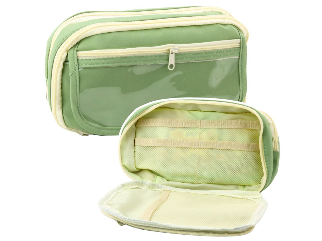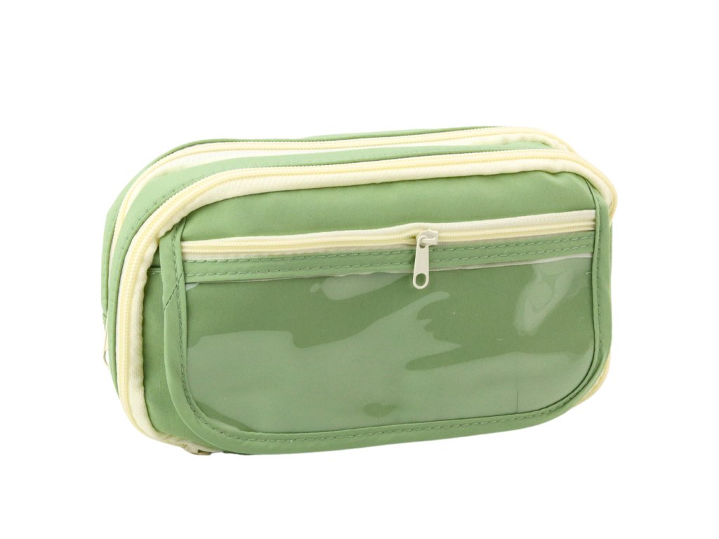 Školní Penál Dvojkomorový S Kapsami Prostorný Zelený 22cm