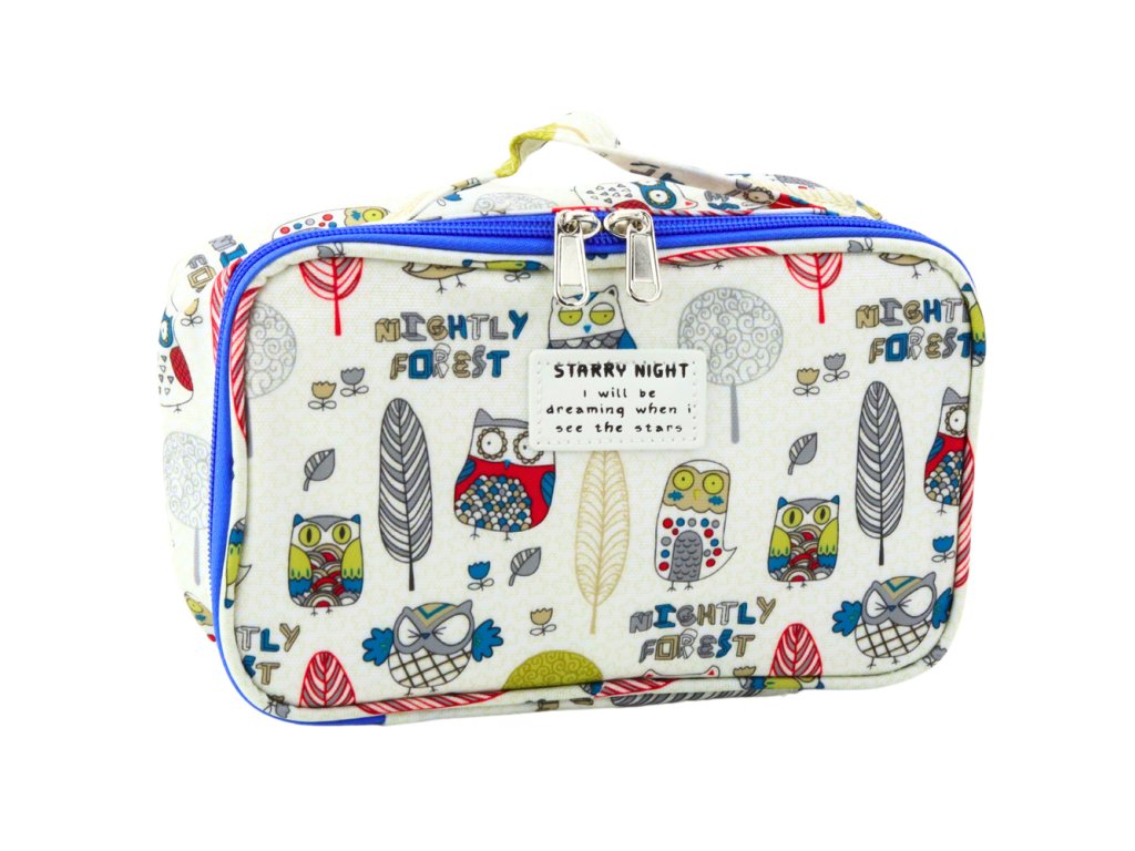 Školní Penál Organizér Kosmetická Taštička Sovičky Bílá 22,5 cm