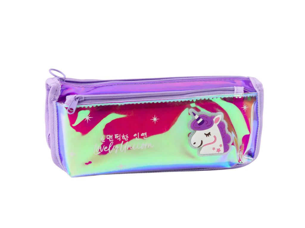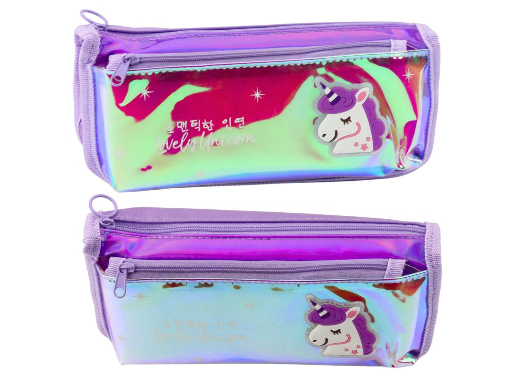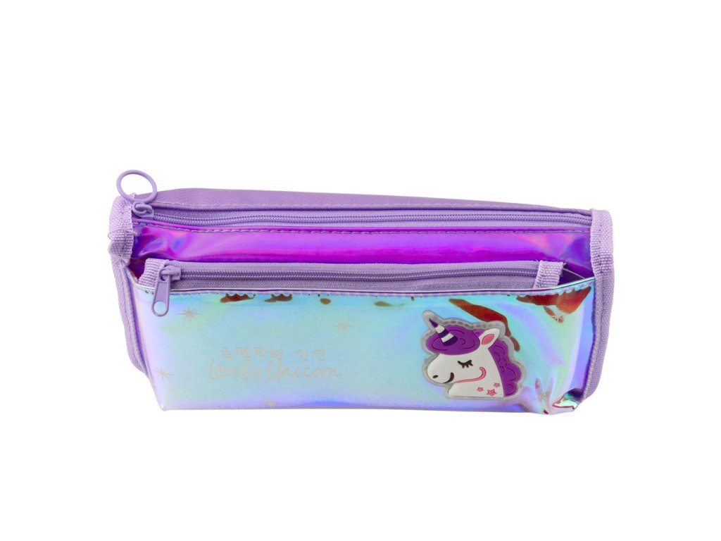 Fialový školní penál s holografickým jednorožcem je stylový a praktický doplněk k školní výbavě každého dítěte Vyrobený z holografického materiálu, který se třpytí různými barvami pod vlivem světla, okouzluje vzhledem a přitahuje pozornost
