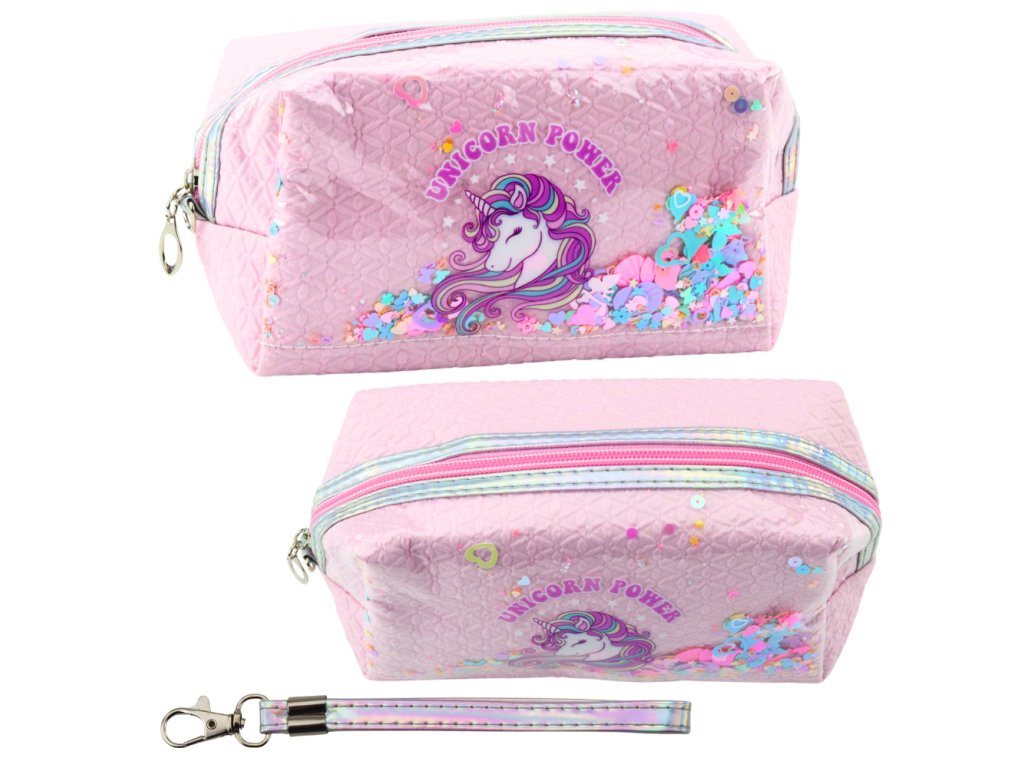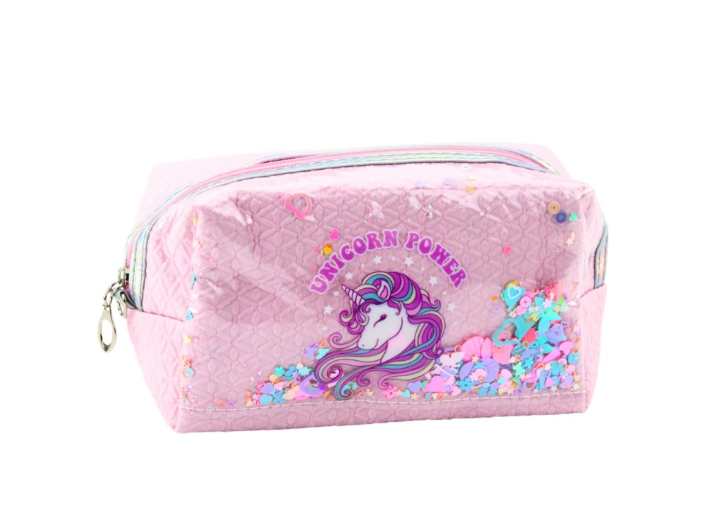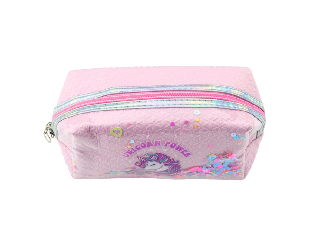 Školní penál s jednorožcem růžový je výjimečný a praktický doplněk pro každé dítě, které si cení estetiky, funkčnosti a kouzla pohádkových vzorů Vyroben s pečlivostí na každý detail, přitahuje pozornost díky originálnímu potisku s jednorožcem a průhlednému okénku s pestrobarevným konfety, které se pohybuje s každým pohybem, zajišťuje jedinečný vizuální efekt