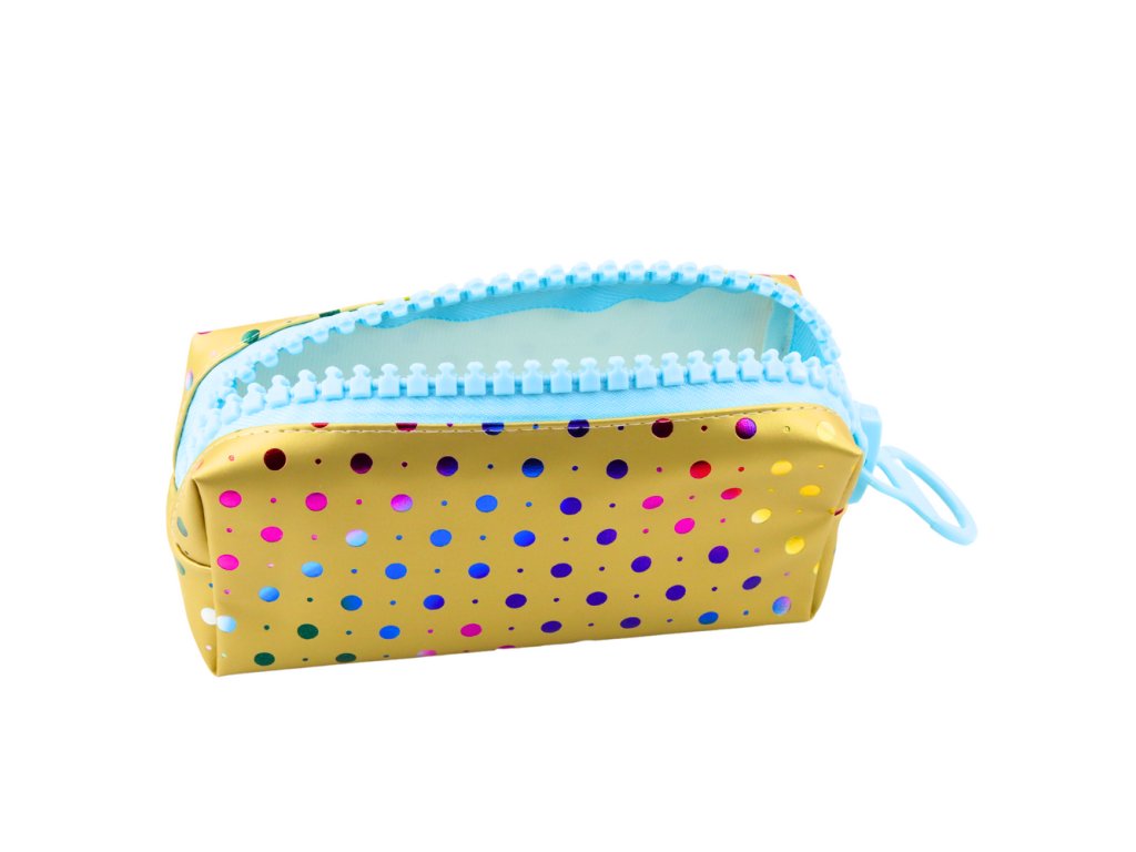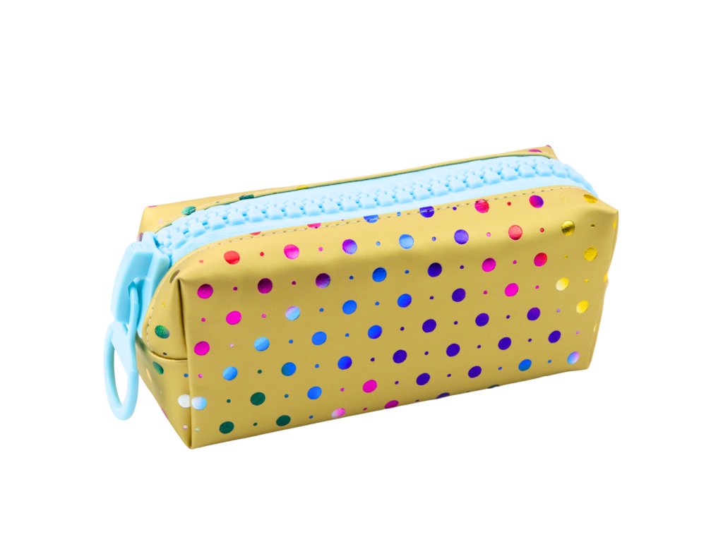 - Výrazné barevné puntíky a velký zlatý zip zaručují, že se toto pouzdro stane oblíbeným doplňkem každého studenta