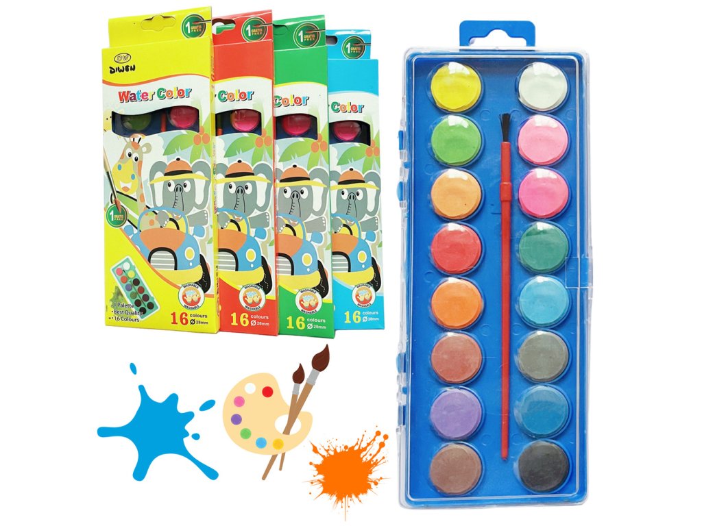 - Objevte zábavný svět akvarelu s naší Školní Sadou Akvarelových Barev 16 Odstínů s Štětcem, která je perfektní jak pro malé začátečníky, tak pro pokročilejší malé umělce
