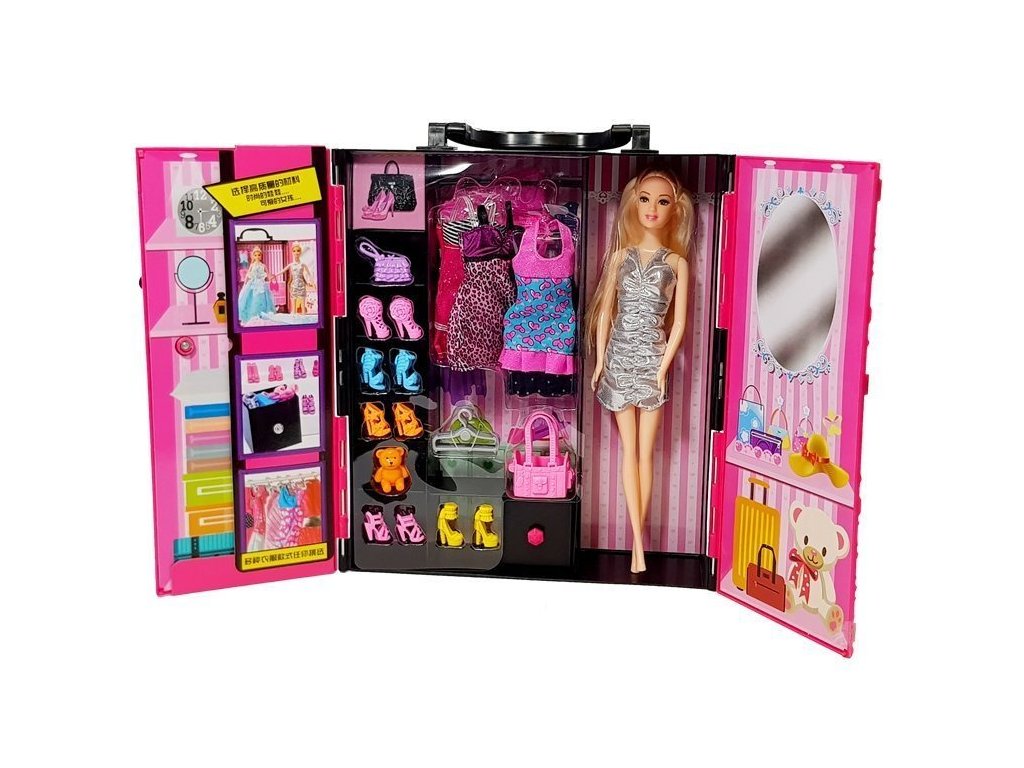 uvnitř se nachází krásná panenka se světlými vlasy, kterou lze oblékat a zdobit doplňky podle vlastního vkusu Interiér pečlivě zpracované pohádkové skříně přiláká všechny holčičky k hraní