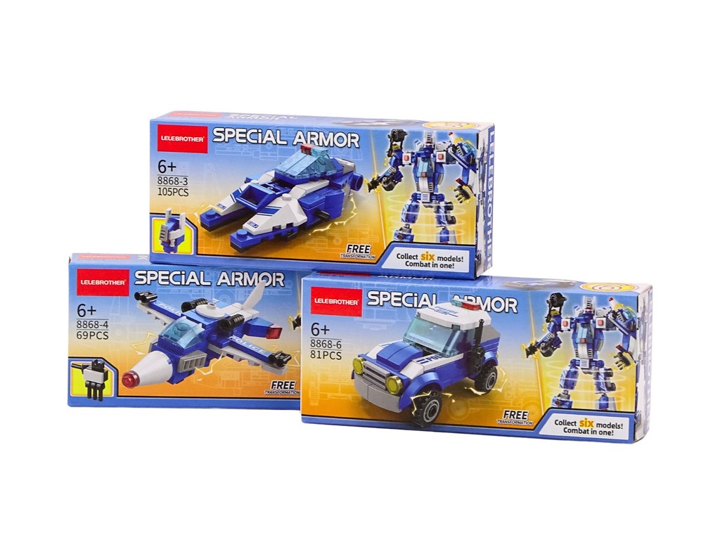 Stavebnice s motivem policejních vozidel je ideální pro mladé nadšence do bezpečnostních složek. Tento set nabízí širokou škálu policejních vozidel, včetně motorky, lodi, letadla a terénních vozidel. Každý model je samostatné dobrodružství, které přinese hodiny tvůrčí zábavy. Set obsahuje různé vzory policejních vozidel, jako je motorka, loď, letadlo a terénní vozidla. Každý model se vyznačuje unikátním designem a konstrukcí, což činí sadu mimořádně atraktivní a zajímavou. Každý model se skládá ze 69 až 106 dílků v závislosti na vzoru. Precizně zpracované kostky zajišťují snadnou montáž a trvanlivost konstrukce. Modely jsou zasílány náhodně, což přidává prvek překvapení a dělá každé balení jedinečným. Je to skvělá příležitost ke sbírání různých policejních vozidel a tvorbě vlastní kolekce. V jednom sběrném balení se nachází 6 různých vzorů. Každý set je jednotlivě zabalen, což umožňuje snadné skladování a organizaci. Stavění kostek s policejním motivem rozvíjí manuální dovednosti, trpělivost a prostorovou představivost dětí. Tvorba policejních modelů také pomáhá rozvíjet zájem o bezpečnostní složky a technologie. Každý set obsahuje podrobný návod, který krok za krokem vede děti procesem skládání modelu. Návody jsou snadno pochopitelné, což činí skládání modelů příjemným a bezproblémovým. V balení se nachází 6 modelů, cena se vztahuje na jeden model, zasílány jsou náhodně. Rozměry balení: 21 cm x 8 cm x 4 cm. Disponuje certifikátem CE a splňuje normu EN71. Určeno pro děti od 6 let.