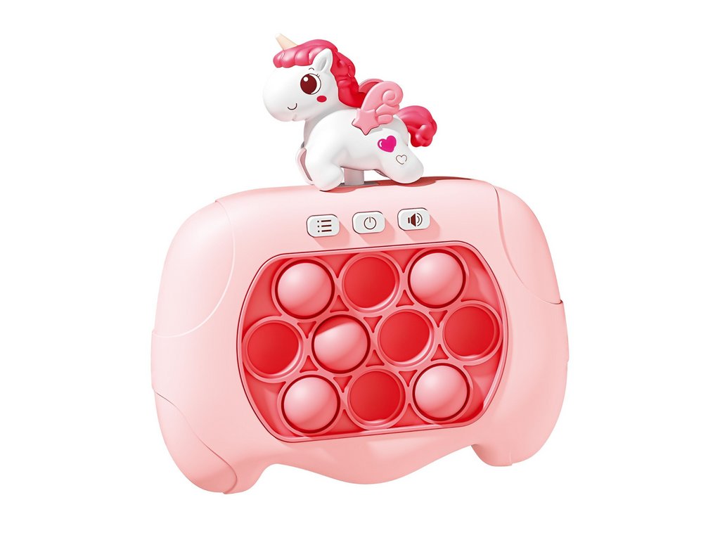 Smyslová hra Jednorožec Pop It na baterie Světla Zvuky Růžová ⭐ Popis produktu Konzole Pop It s motivem jednorožce je barevná a interaktivní smyslová hra, která rozvíjí kognitivní schopnosti dítěte a zároveň mu poskytuje skvělou zábavu.
