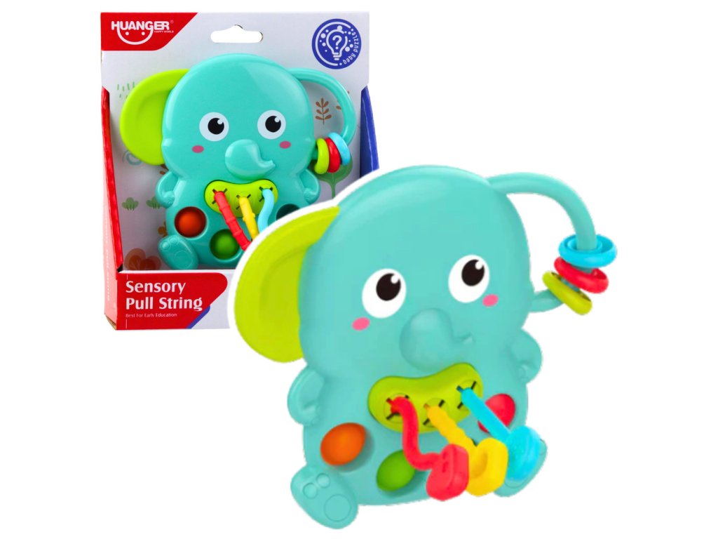 Smyslové dětské chrastítko: zelený slon s pohyblivými prvky