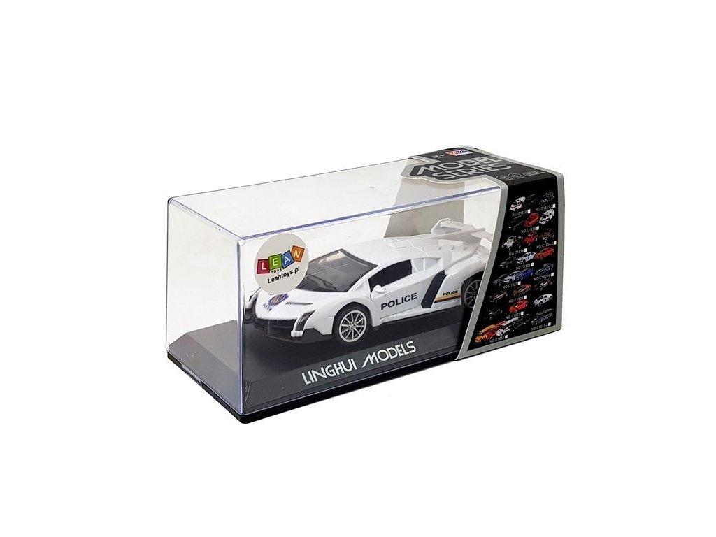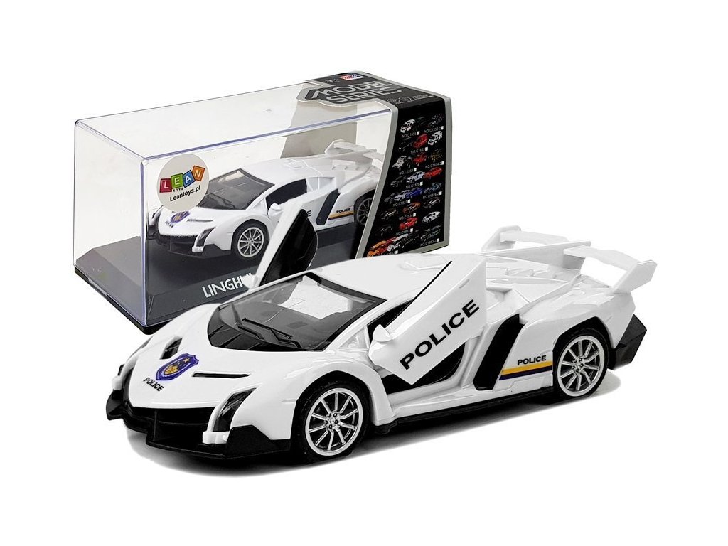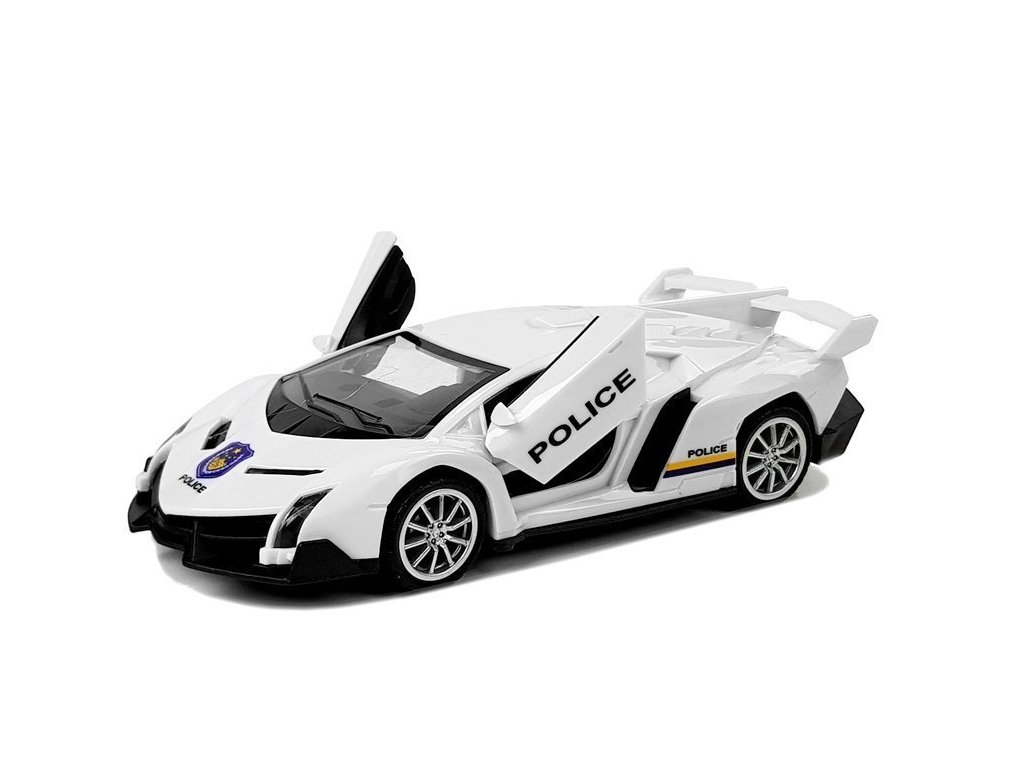 - Tento jedinečný sportovní auto s frikčním pohonem a policejními zvuky v bílé barvě je snem každého dítěte se zálibou v automobilových honičkách!