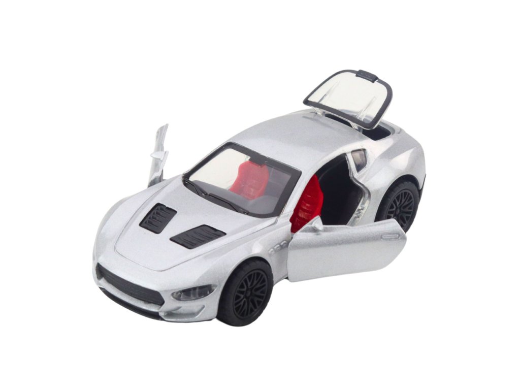 Sportovní kovové auto s pohonem pull back, světelnými a zvukovými efekty je skvělou volbou pro všechny fanoušky rychlé jízdy a realistických modelů aut.