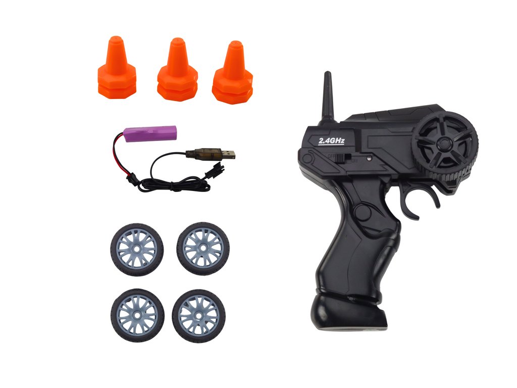 - Dva komplety kol: kola s běhounem pro plnou stabilitu a hladká kola ideální pro efektní drifty