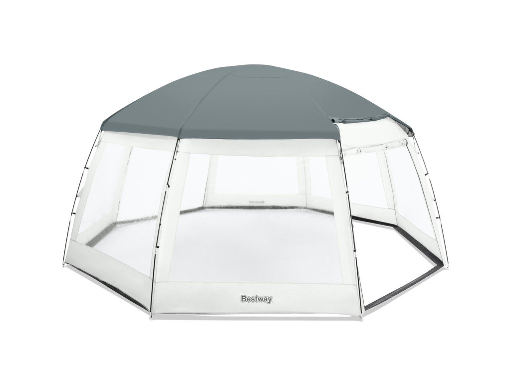 Altana stan k bazénu 600 x 600 x 295 cm Bestway 58612 Skládací stan je ideálním řešením pro horké dny Je kompatibilní se všemi nafukovacími vířivkami a bazény o průměru do 4,88 m, zajišťuje soukromí a chrání před deštěm, sluncem a dalšími povětrnostními vlivy